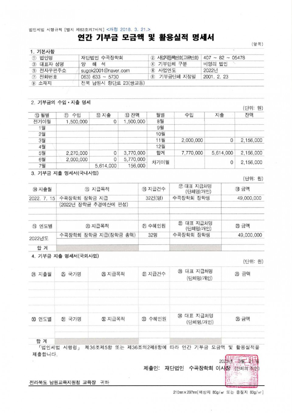 2022년도 연간 기부금 모금액 및 활용실적 페이지 정보 작성자 관리자 댓글 댓글 0건 조회Hit 407회 작성일Date 23-06-14 13:15 본문 수곡장학회 2022년도 연간 기부금 모금액 및 활용실적 목록 댓글 0 댓글목록 등록된 댓글이 없습니다.